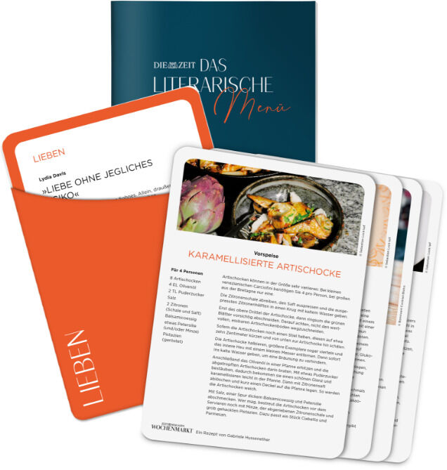Mit der ZEIT-Edition »Das Literarische Menü« werden Sie zum Gastgeber unvergesslicher Abende im Zeichen großer Literatur: Laden Sie ein zu Ihrem ganz persönlichen literarischen Quartett und lesen Sie gemeinsam mit Ihren Gästen kurze Passagen aus ausgewählten Werken der Weltliteratur. Die daraus entstehenden Gespräche und auch die begleitenden kulinarischen Genüsse machen Ihre Einladung zu etwas ganz Besonderem!