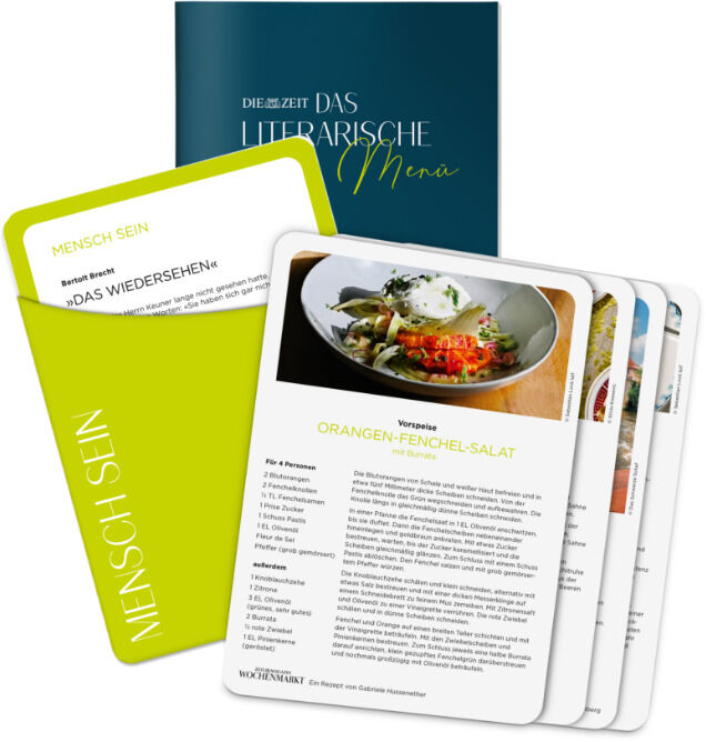 »Mensch sein«, »Lieben« und »Erinnern« - zu diesen drei Themen enthält die ZEIT-Edition »Das Literarische Menü« jeweils mehrere passend ausgewählte Literaturstellen und eigens entwickelte Diskussionsfragen und Denkanstöße, mit denen Sie als Moderator/in des Abends für angeregte Gespräche sorgen.
