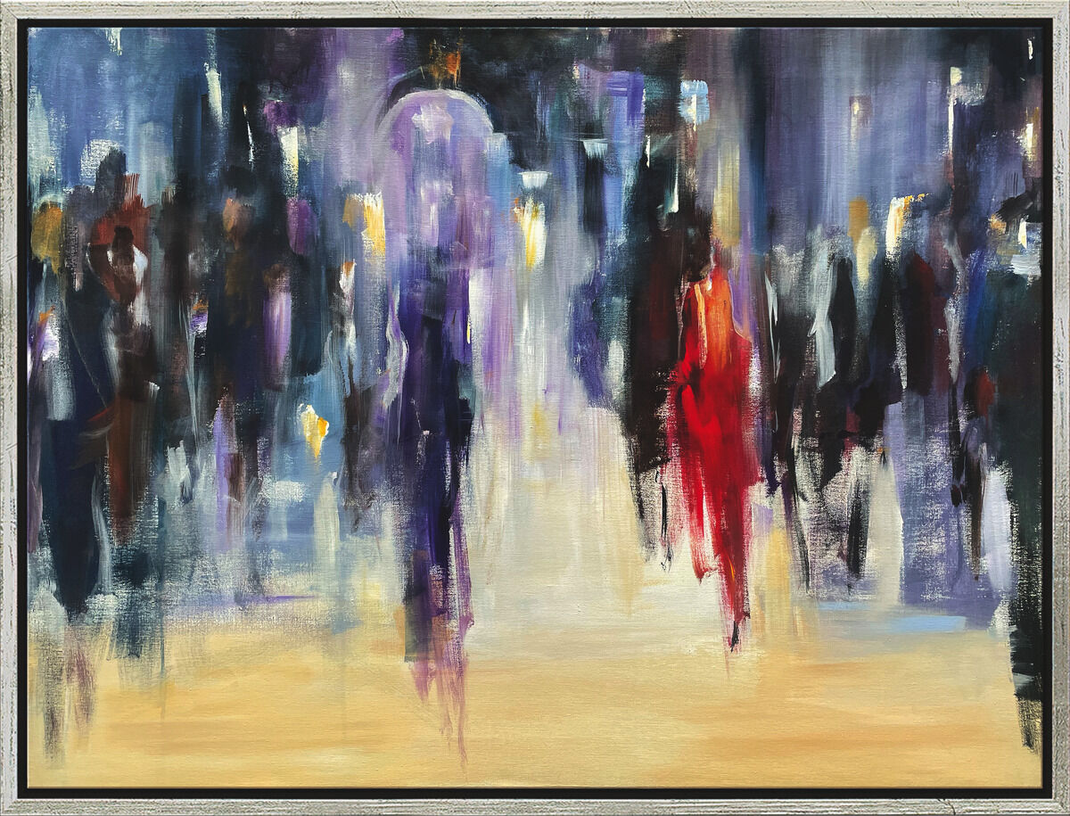 Die Werke des 1964 geborenen Robert Hettich oszillieren gekonnt zwischen Abstraktion und Konkretisation, zwischen Farbimpression und figürlicher Darstellung. Die Motive bleiben erkennbar, doch ist die Hauptwirkung eine Stimmung, eine Emotion, die sich dem Betrachter gerade durch die in Farbfläche und Komposition aufgelösten Menschengruppen mitteilt.